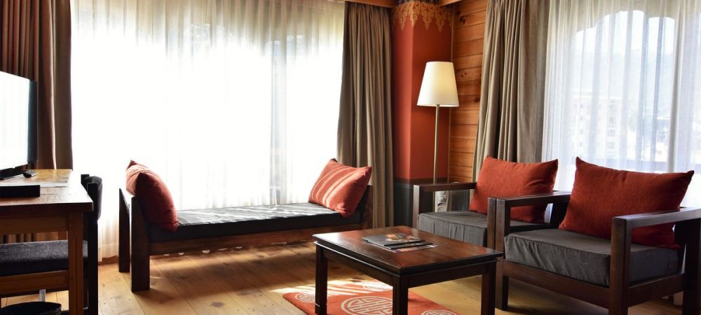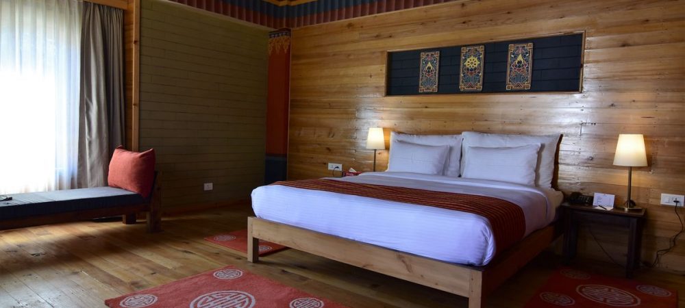 Our upscale boutique hotel near the river in Thimphu provides 41 very spacious guest rooms, all tastefully furnished and decorated, combining elements of local culture and traditions with all of the comforts and features expected by experienced modern travelers, including free Wi-Fi, flat-screen TV, minibar, safe, complimentary tea and coffee, slippers, and much more, as well as large windows providing stunning views of the surrounding landscape.